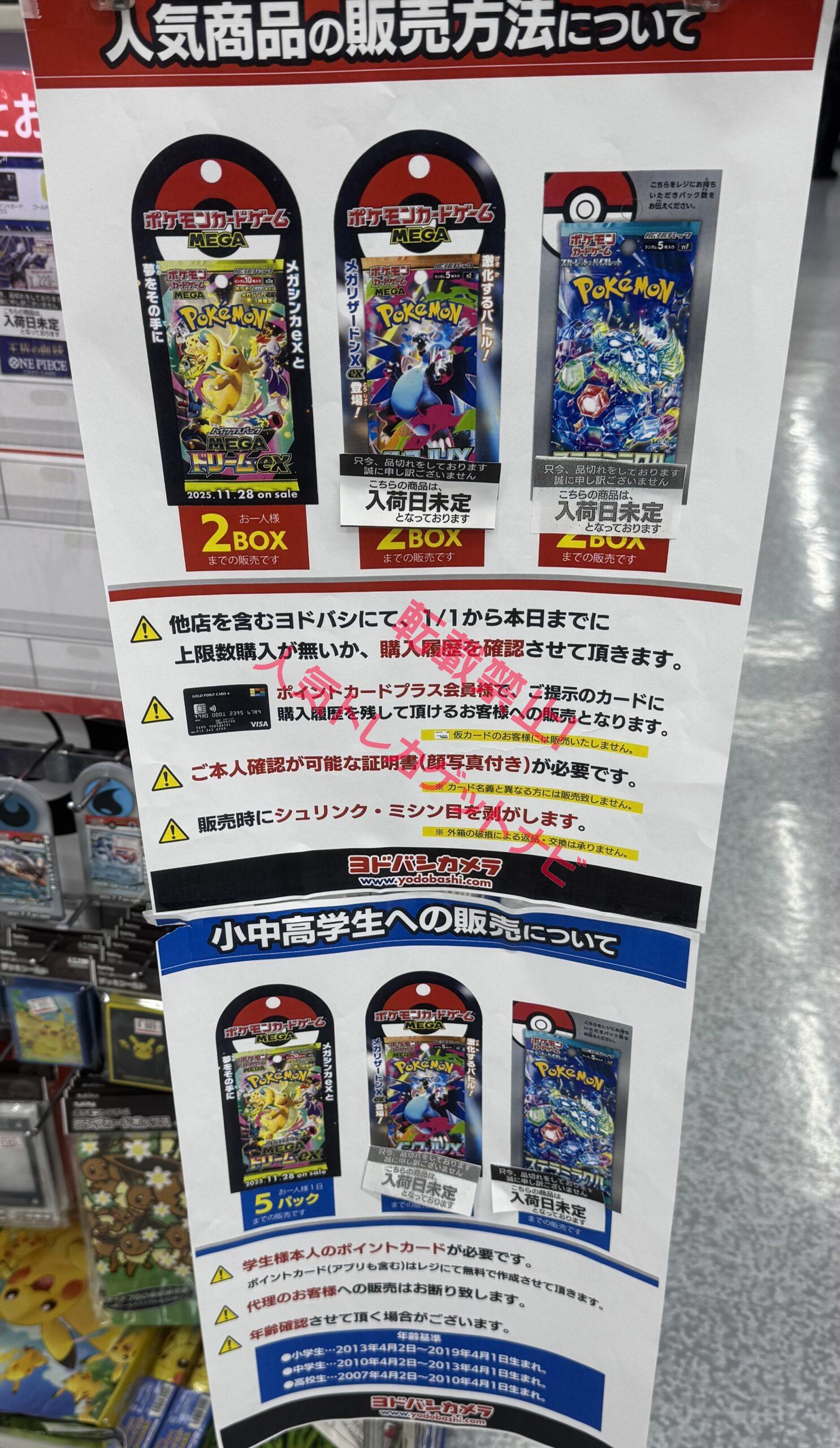 『ヨドバシカメラ』店頭でのポケカ、ワンピースカード、遊戯王カードのゲリラ販売情報。転売屋に負けずに定価入手する為の支援を実施✨