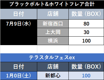 7月9日のブラックボルト&ホワイトフレア、テラスタルフェスexの販売実績です。