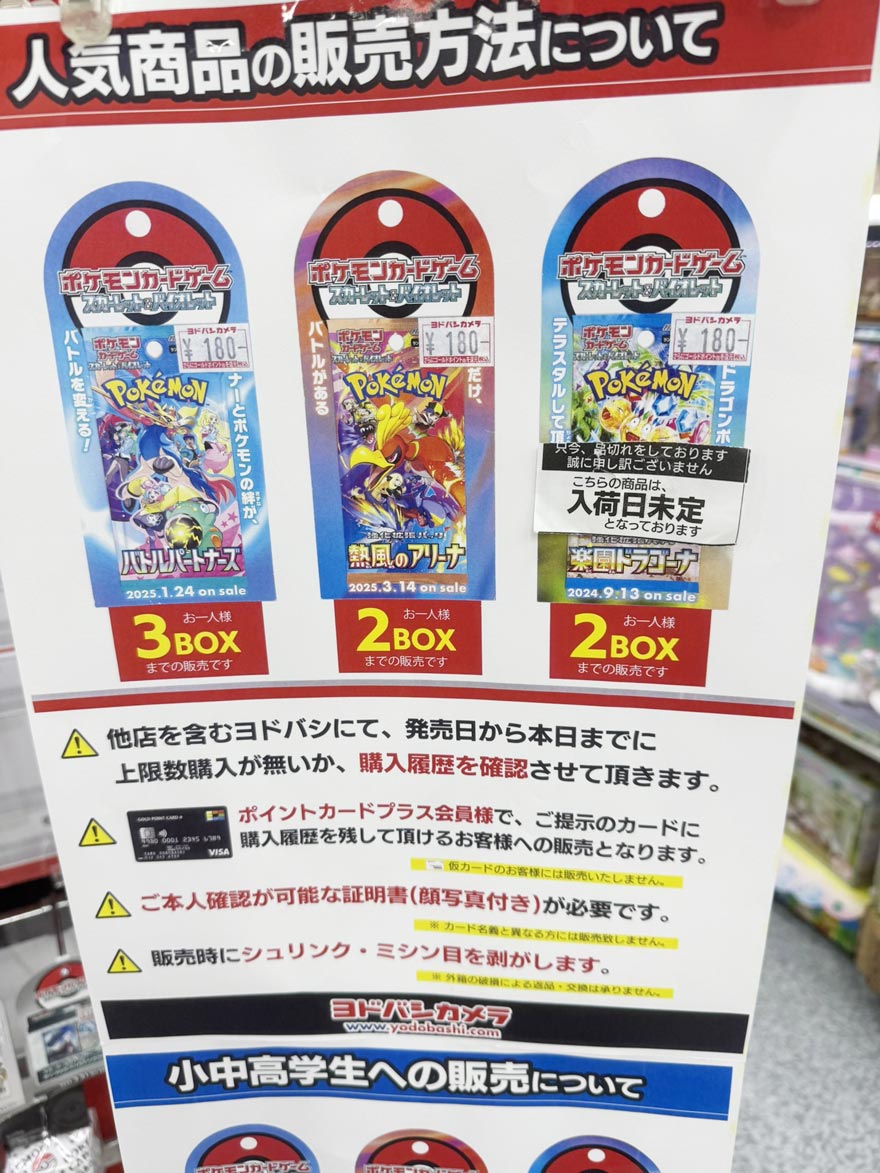 『ヨドバシカメラ』店頭でのポケカ、ワンピースカード、遊戯王カードのゲリラ販売情報。転売屋に負けずに定価入手する為の支援を実施✨