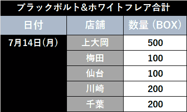 7月13日のブラックボルト&ホワイトフレア販売実績です。