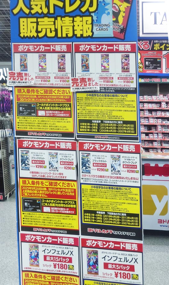 『ヨドバシカメラ』店頭でのポケカ、ワンピースカード、遊戯王カードのゲリラ販売情報。転売屋に負けずに定価入手する為の支援を実施✨