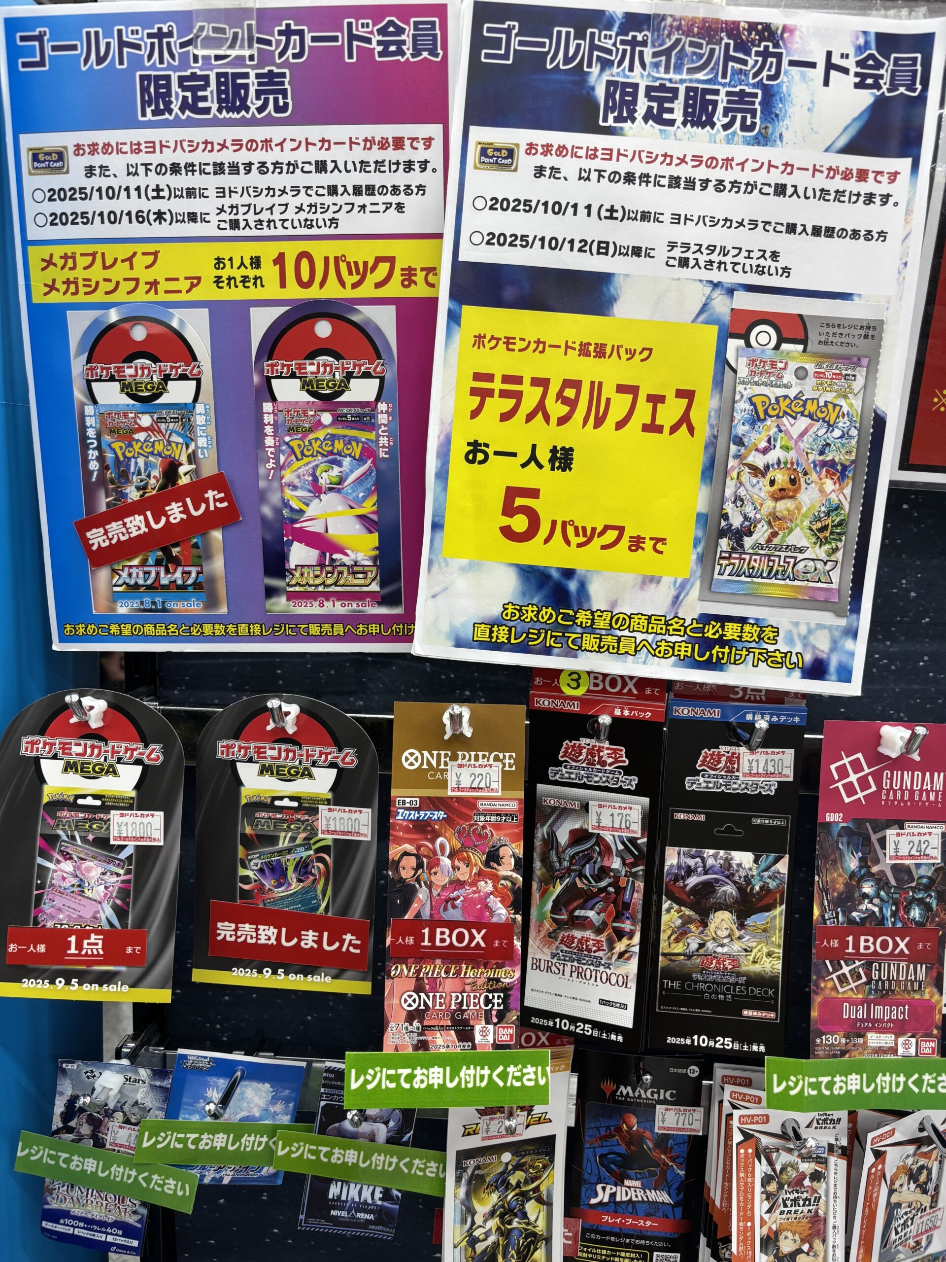 『ヨドバシカメラ』店頭でのポケカ、ワンピースカード、遊戯王カードのゲリラ販売情報。転売屋に負けずに定価入手する為の支援を実施✨