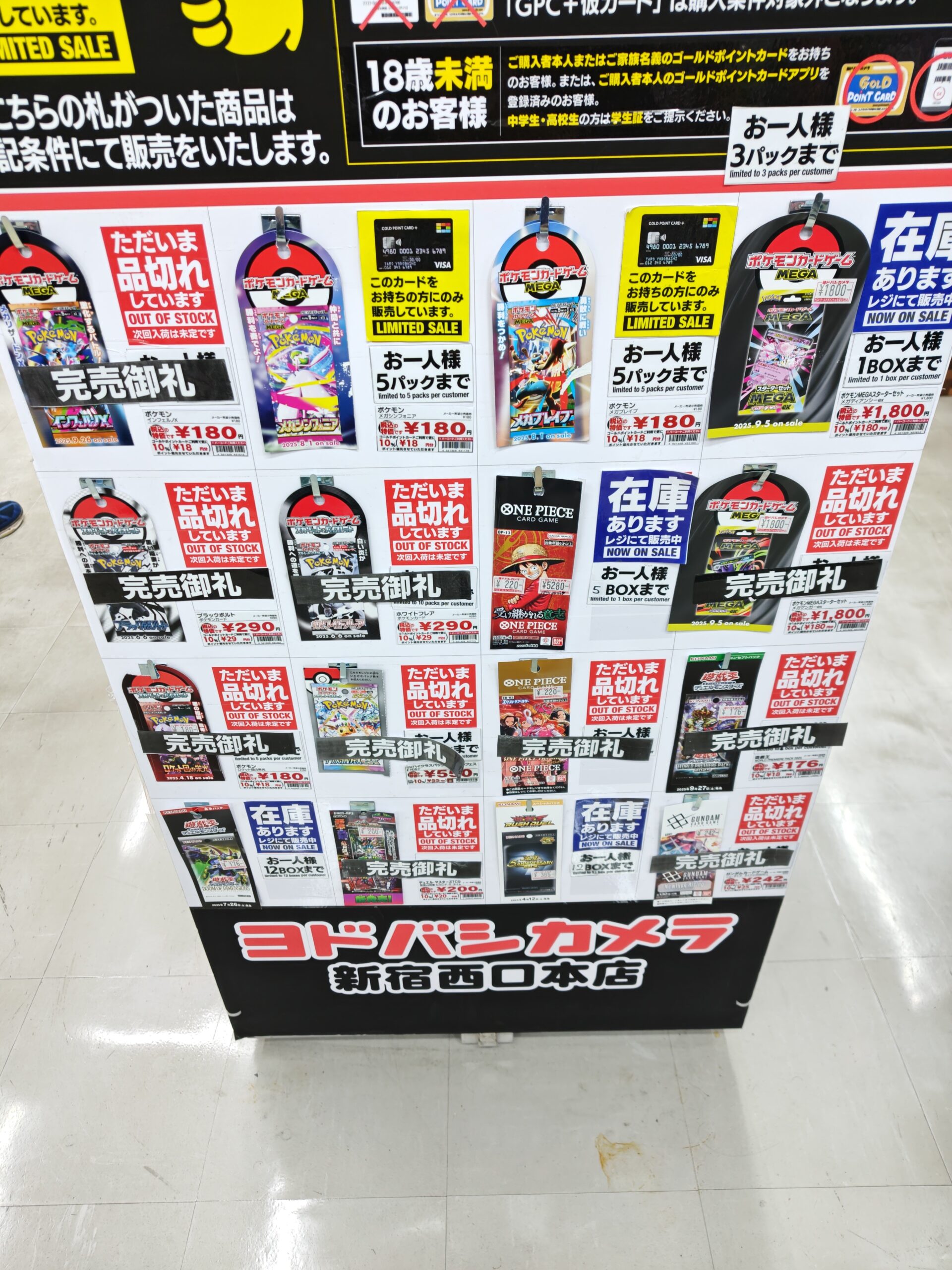 『ヨドバシカメラ』店頭でのポケカ、ワンピースカード、遊戯王カードのゲリラ販売情報。転売屋に負けずに定価入手する為の支援を実施✨