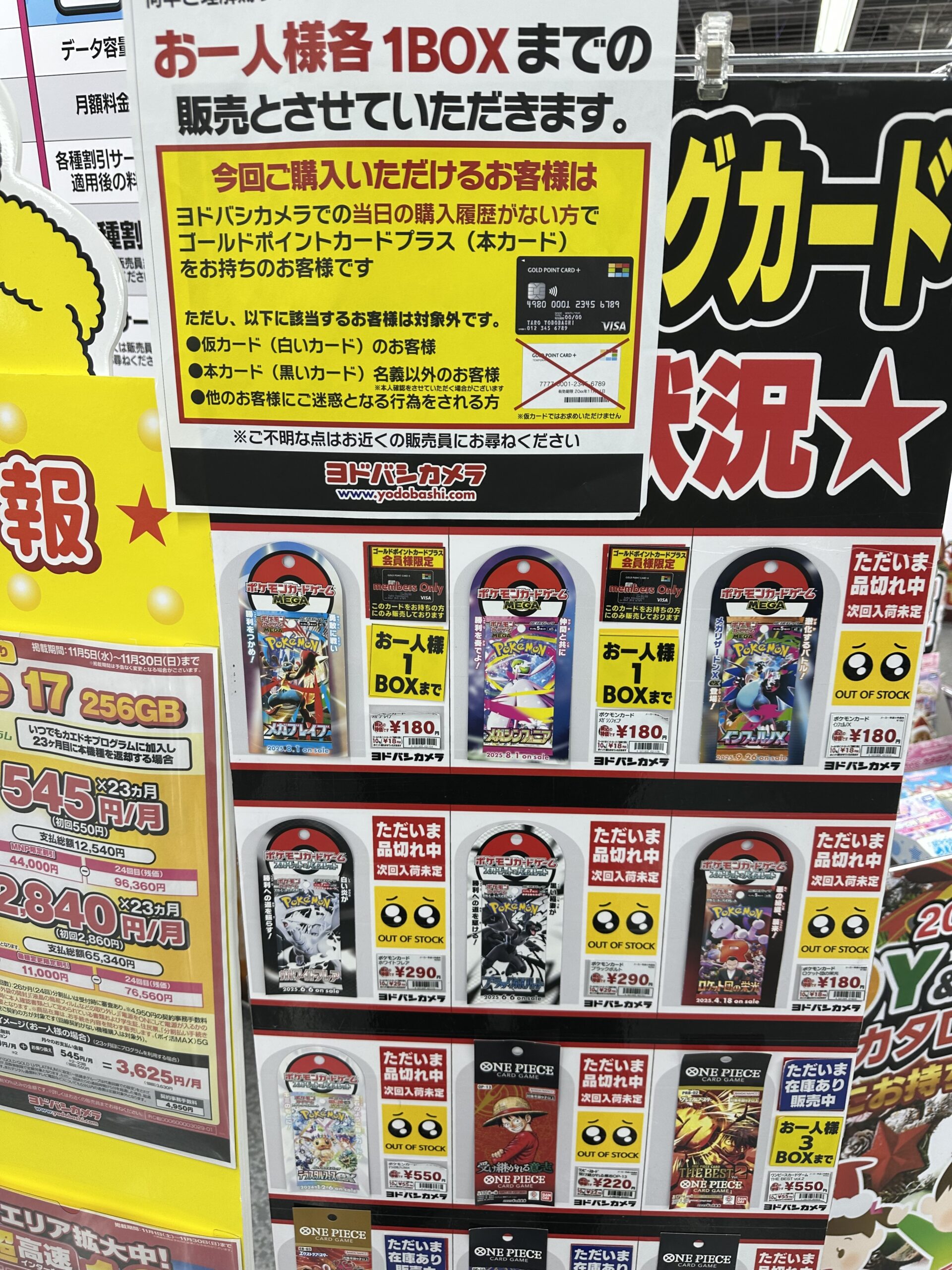 『ヨドバシカメラ』店頭でのポケカ、ワンピースカード、遊戯王カードのゲリラ販売情報。転売屋に負けずに定価入手する為の支援を実施✨