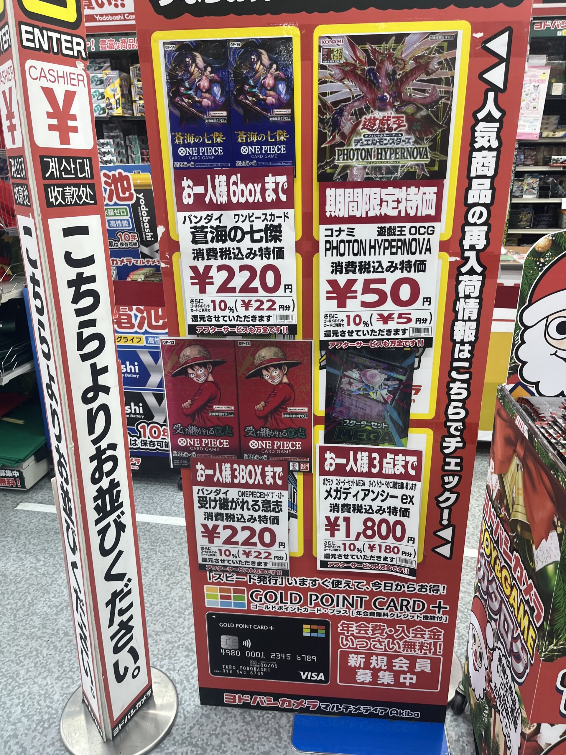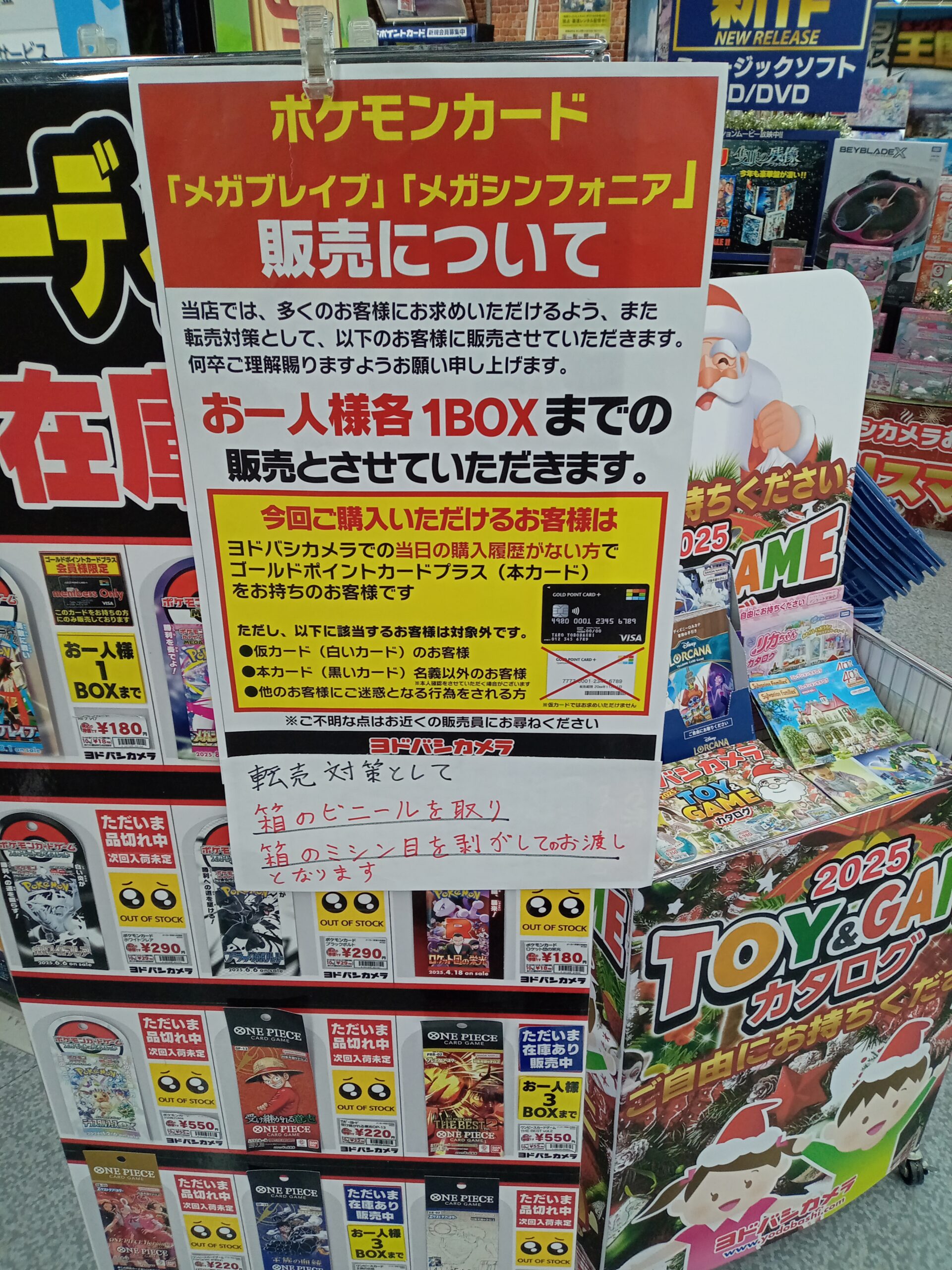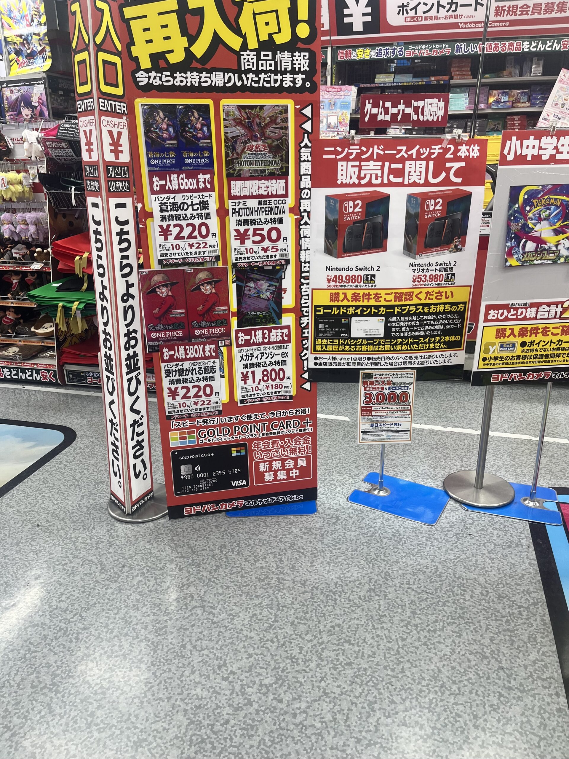 『ヨドバシカメラ』店頭でのポケカ、ワンピースカード、遊戯王カードのゲリラ販売情報。転売屋に負けずに定価入手する為の支援を実施✨