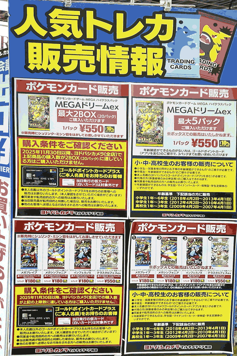 『ヨドバシカメラ』店頭でのポケカ、ワンピースカード、遊戯王カードのゲリラ販売情報。転売屋に負けずに定価入手する為の支援を実施✨