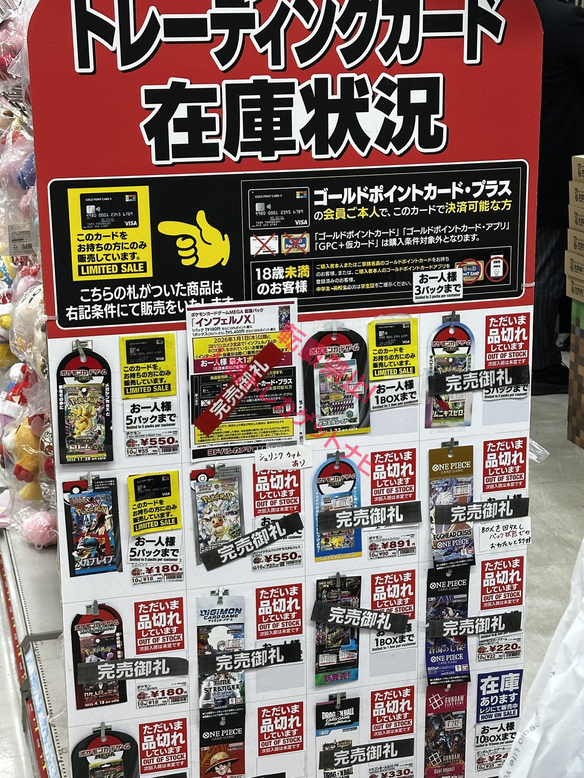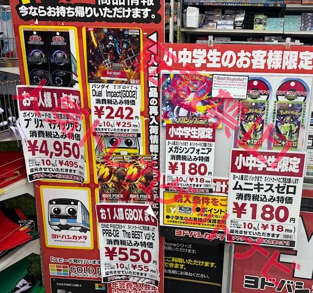 『ヨドバシカメラ』店頭でのポケカ、ワンピースカード、遊戯王カードのゲリラ販売情報。転売屋に負けずに定価入手する為の支援を実施✨
