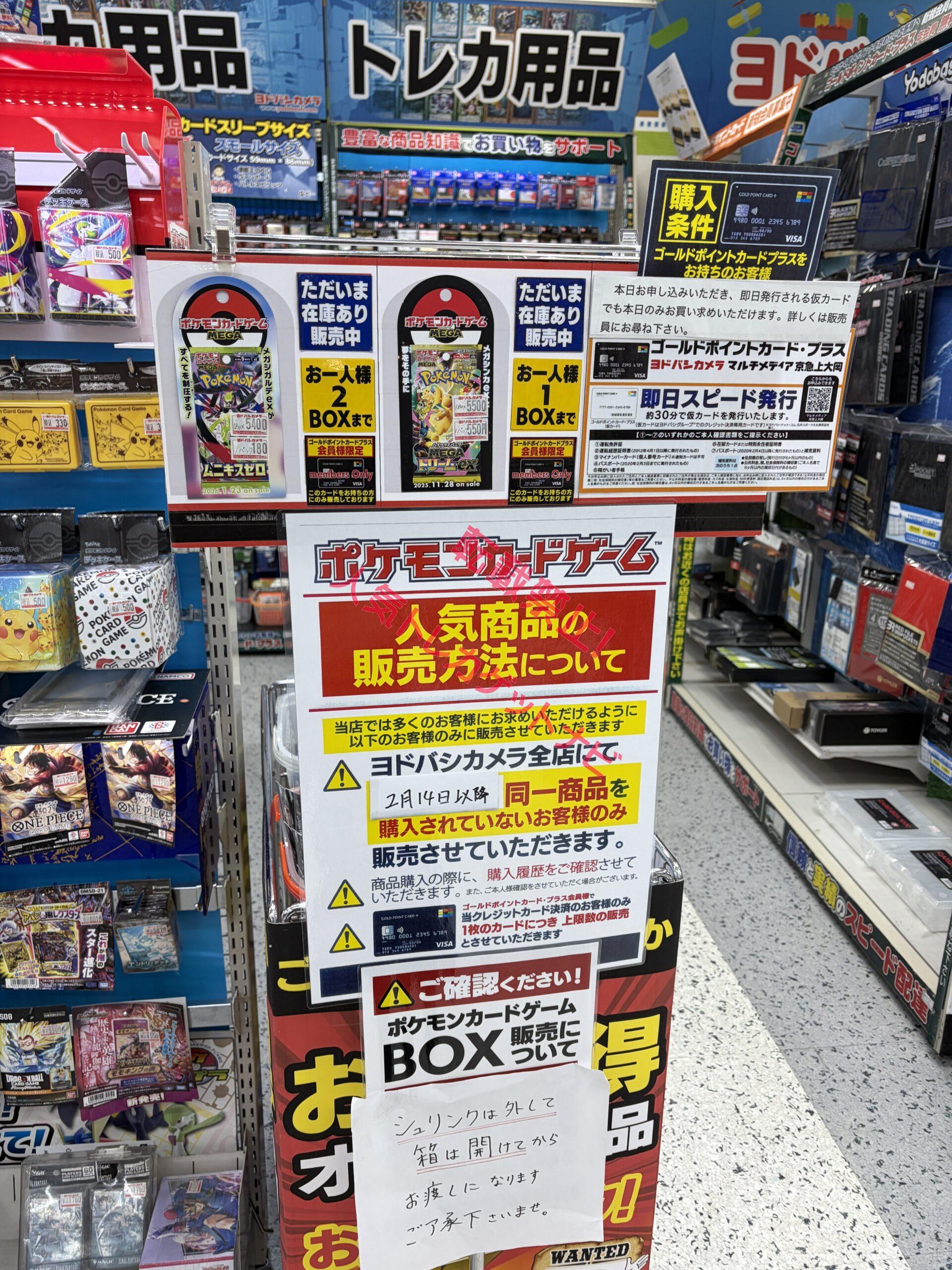 『ヨドバシカメラ』店頭でのポケカ、ワンピースカード、遊戯王カードのゲリラ販売情報。転売屋に負けずに定価入手する為の支援を実施✨