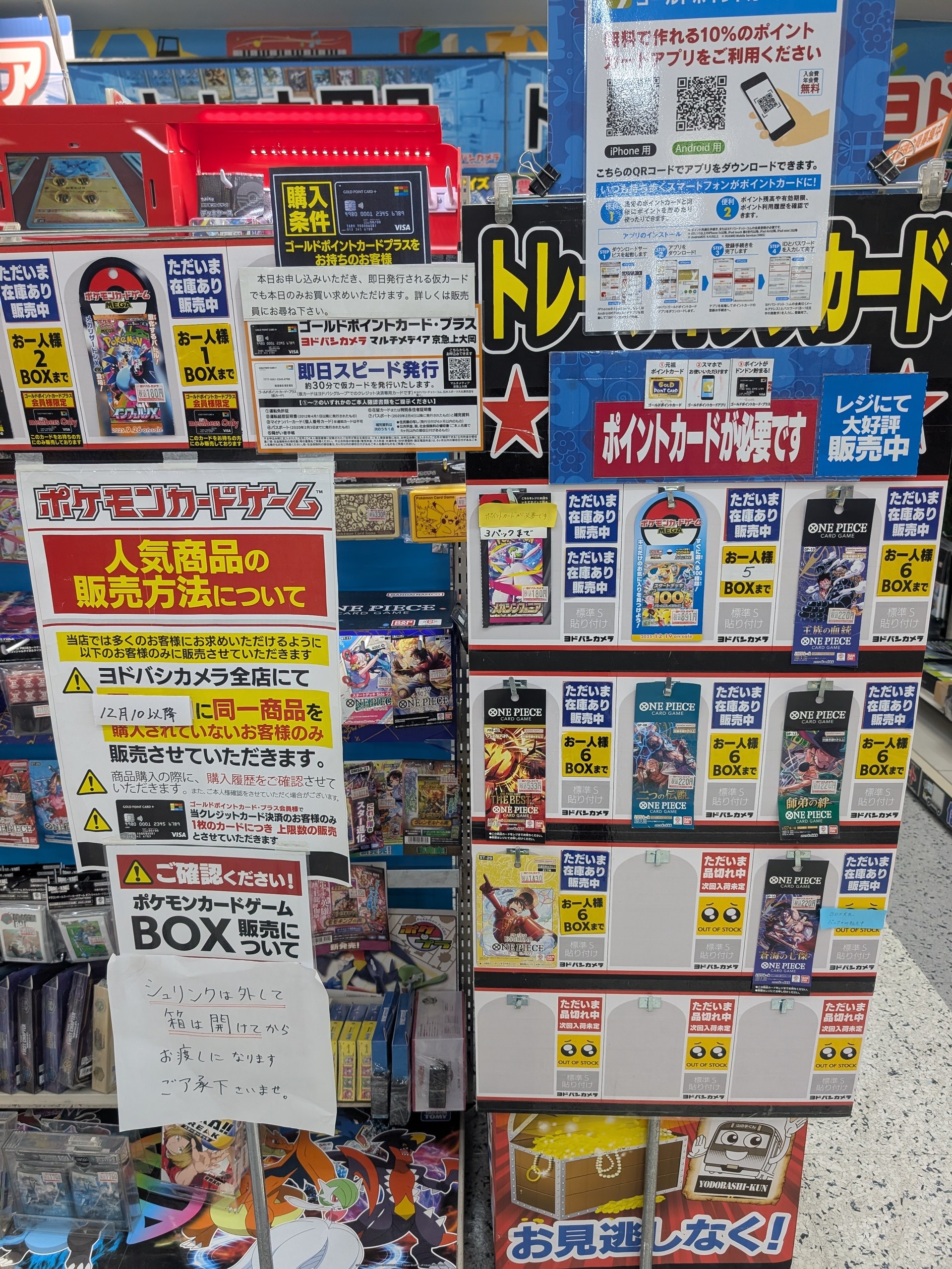 『ヨドバシカメラ』店頭でのポケカ、ワンピースカード、遊戯王カードのゲリラ販売情報。転売屋に負けずに定価入手する為の支援を実施✨