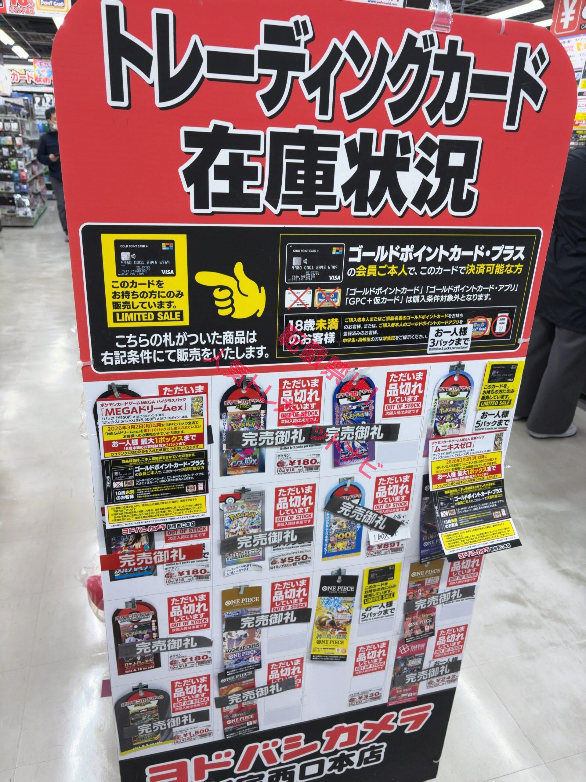 『ヨドバシカメラ』店頭でのポケカ、ワンピースカード、遊戯王カードのゲリラ販売情報。転売屋に負けずに定価入手する為の支援を実施✨