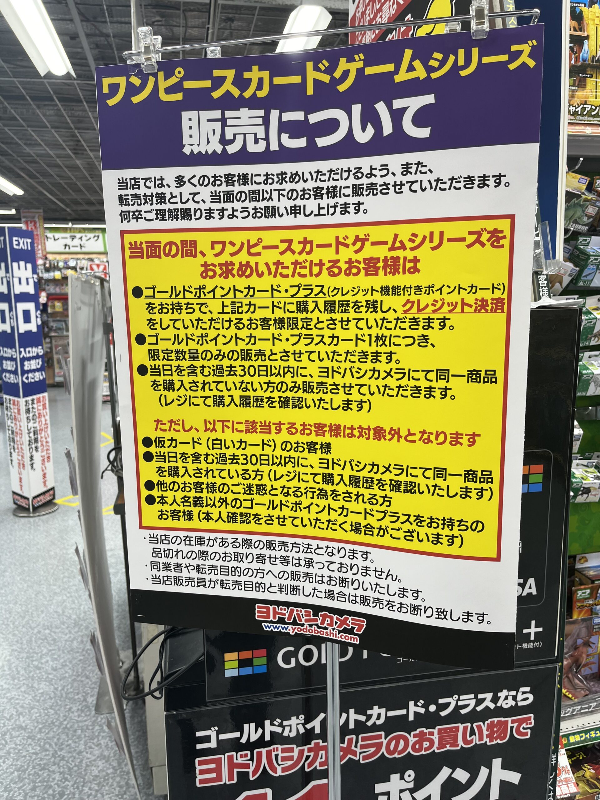 『ヨドバシカメラ』店頭でのポケカ、ワンピースカード、遊戯王カードのゲリラ販売情報。転売屋に負けずに定価入手する為の支援を実施✨