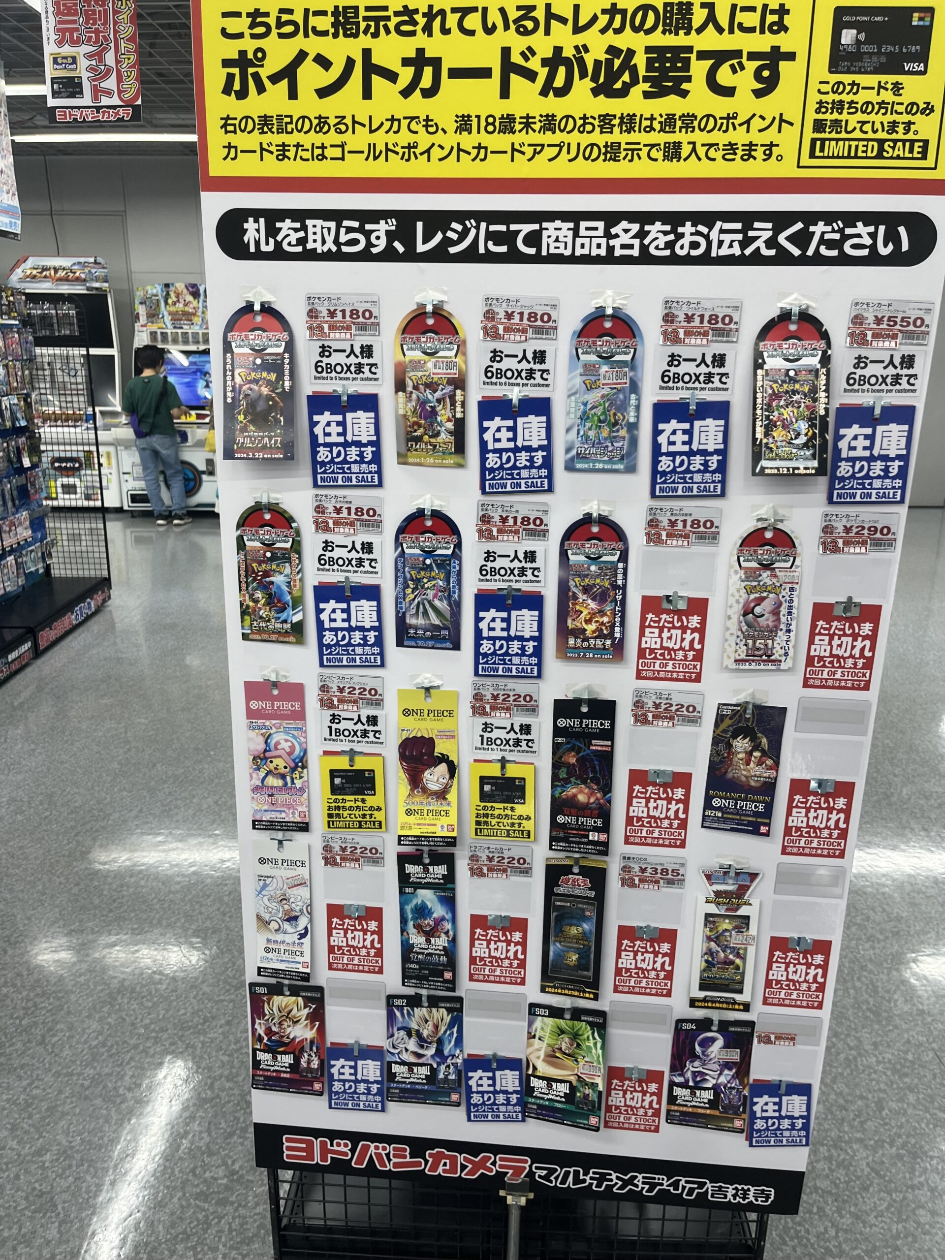 『ヨドバシカメラ』店頭でのポケカ、ワンピースカード、遊戯王カードのゲリラ販売情報。転売屋に負けずに定価入手する為の支援を実施✨