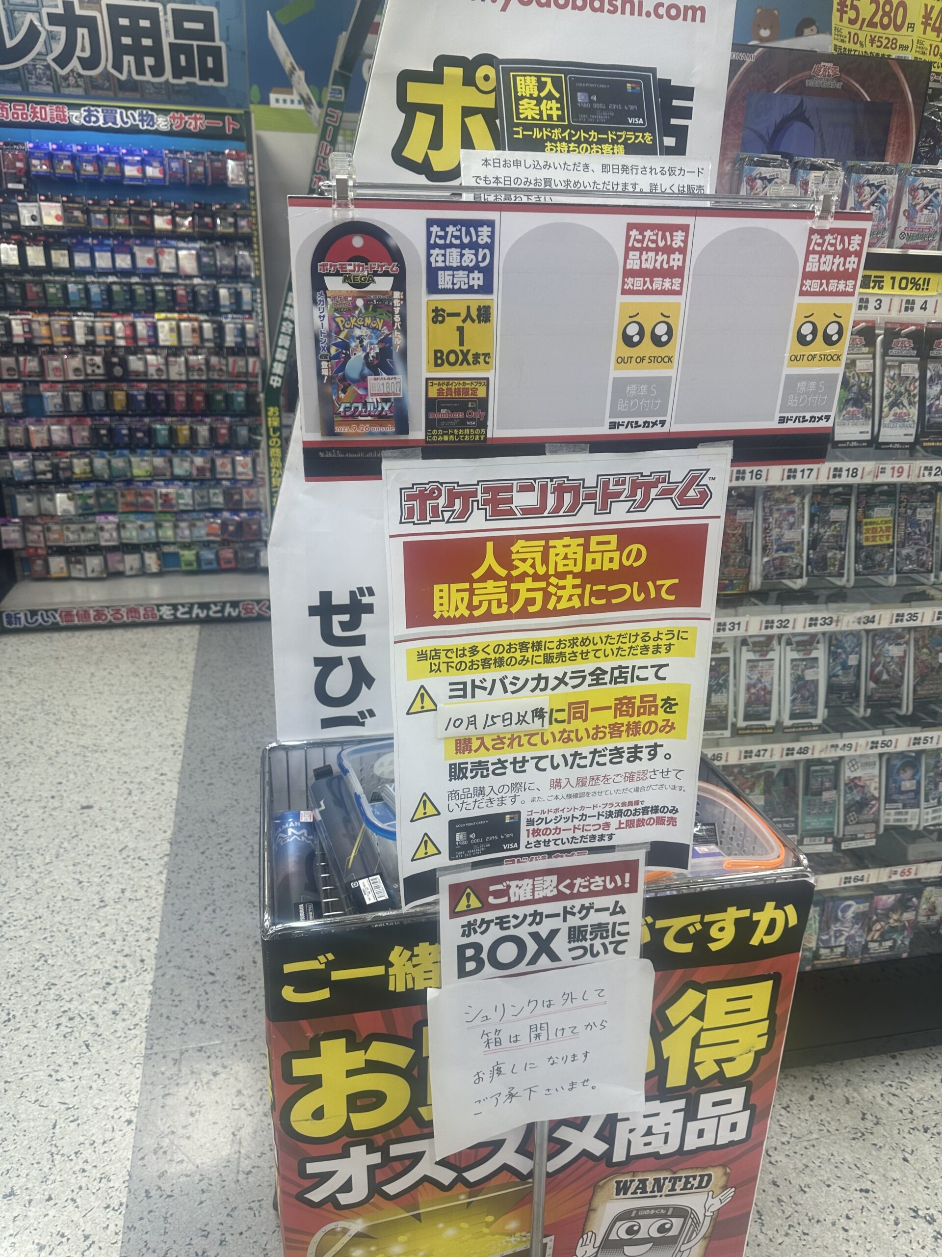 『ヨドバシカメラ』店頭でのポケカ、ワンピースカード、遊戯王カードのゲリラ販売情報。転売屋に負けずに定価入手する為の支援を実施✨