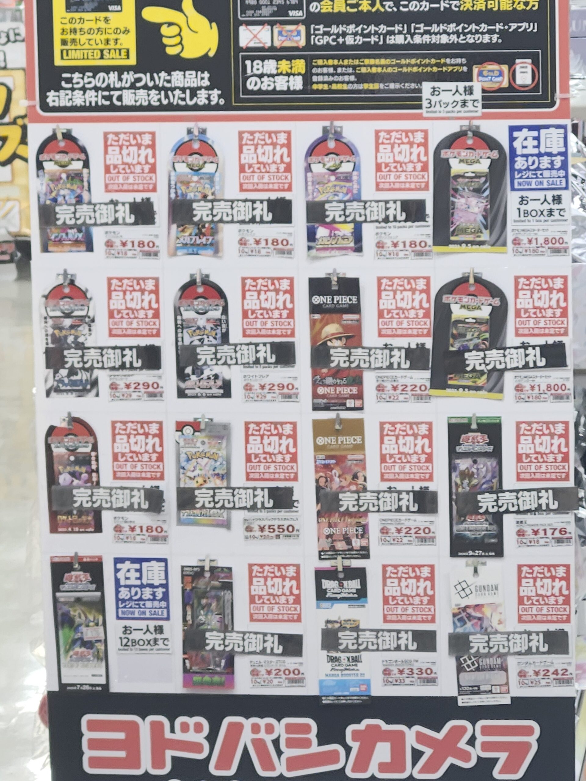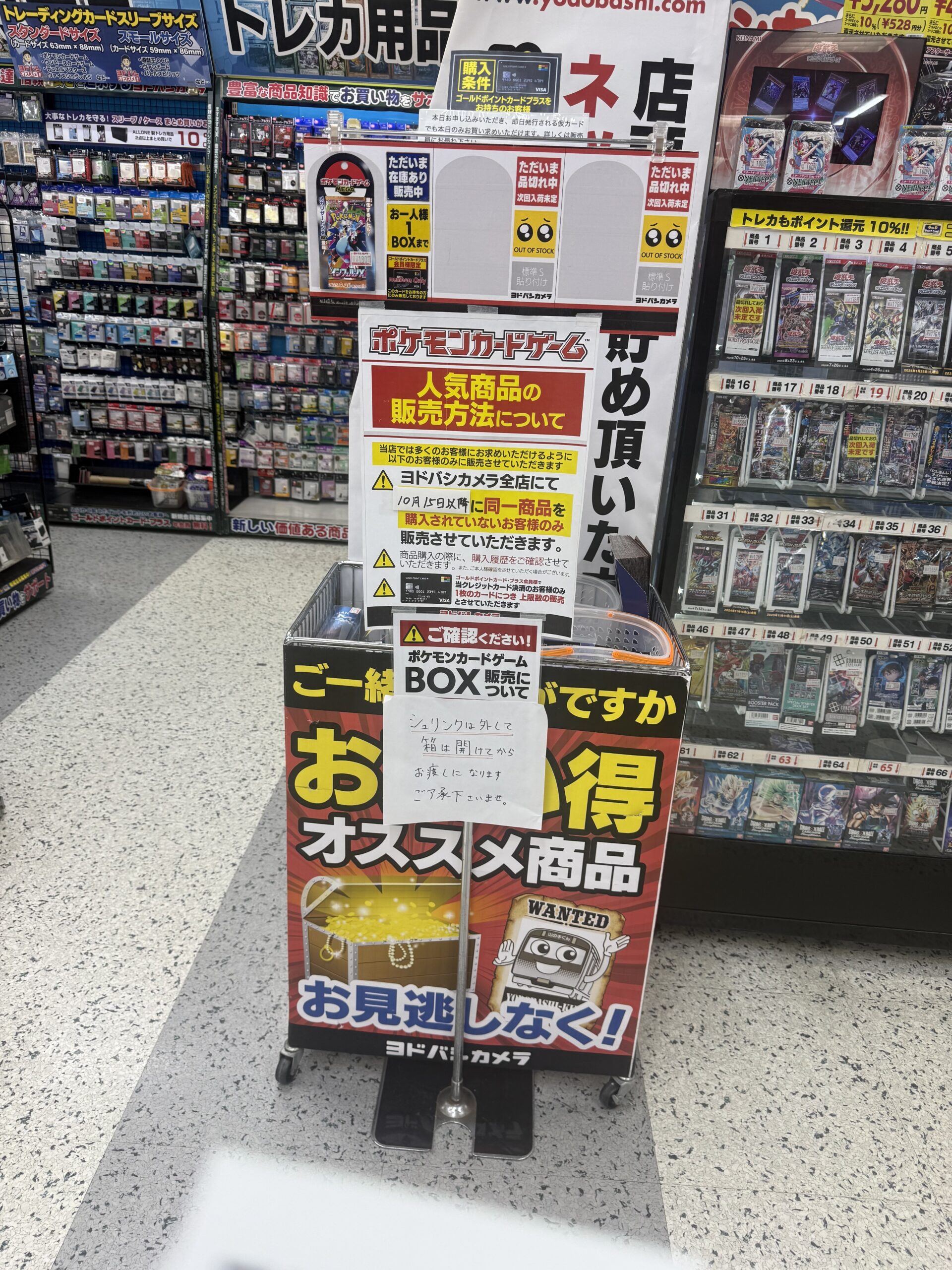 『ヨドバシカメラ』店頭でのポケカ、ワンピースカード、遊戯王カードのゲリラ販売情報。転売屋に負けずに定価入手する為の支援を実施✨