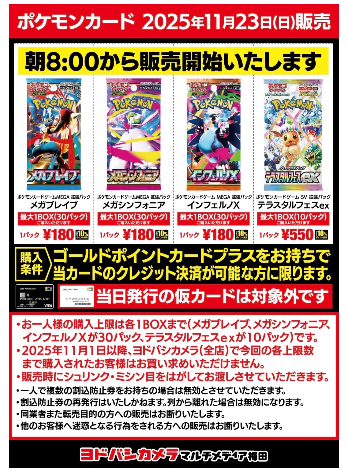 『ヨドバシカメラ』店頭でのポケカ、ワンピースカード、遊戯王カードのゲリラ販売情報。転売屋に負けずに定価入手する為の支援を実施✨