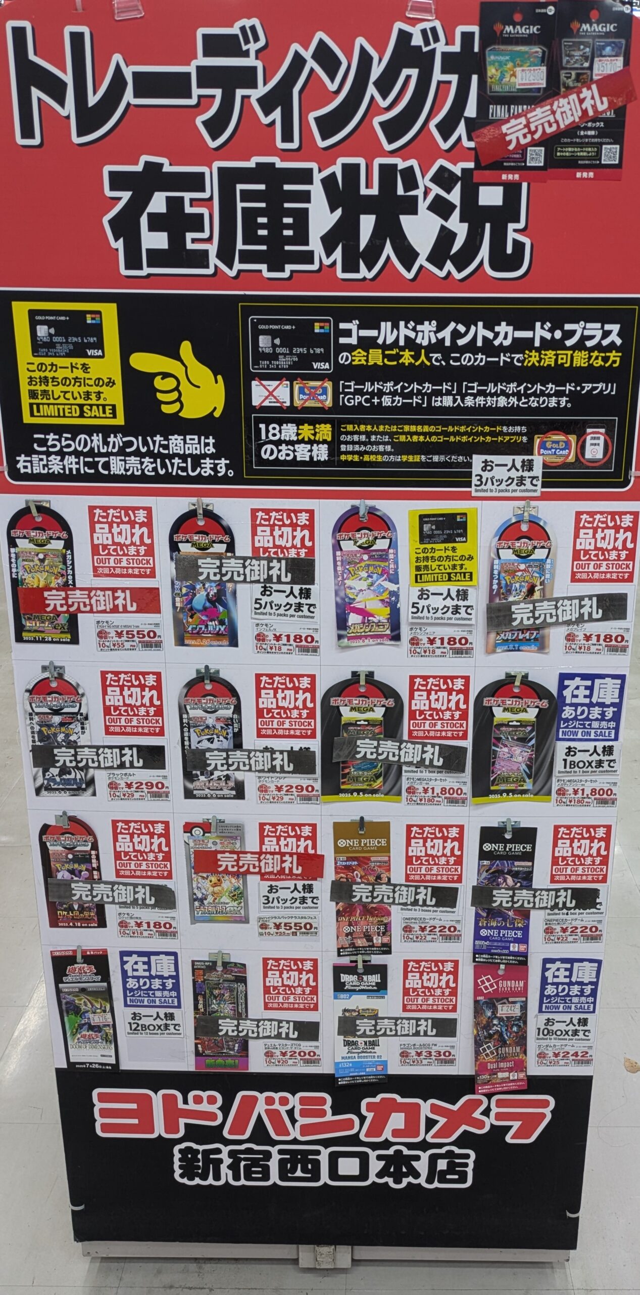 『ヨドバシカメラ』店頭でのポケカ、ワンピースカード、遊戯王カードのゲリラ販売情報。転売屋に負けずに定価入手する為の支援を実施✨