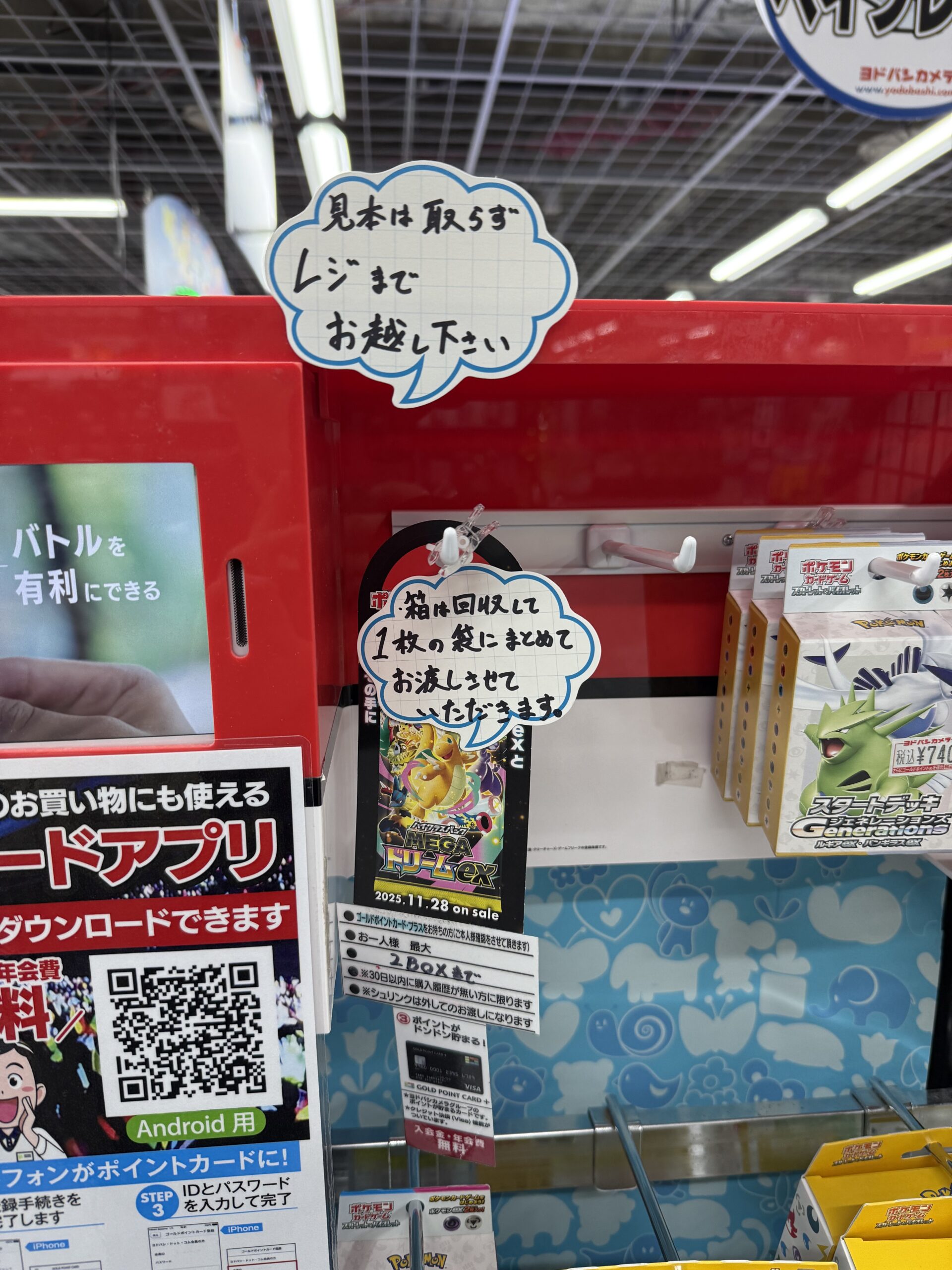 『ヨドバシカメラ』店頭でのポケカ、ワンピースカード、遊戯王カードのゲリラ販売情報。転売屋に負けずに定価入手する為の支援を実施✨