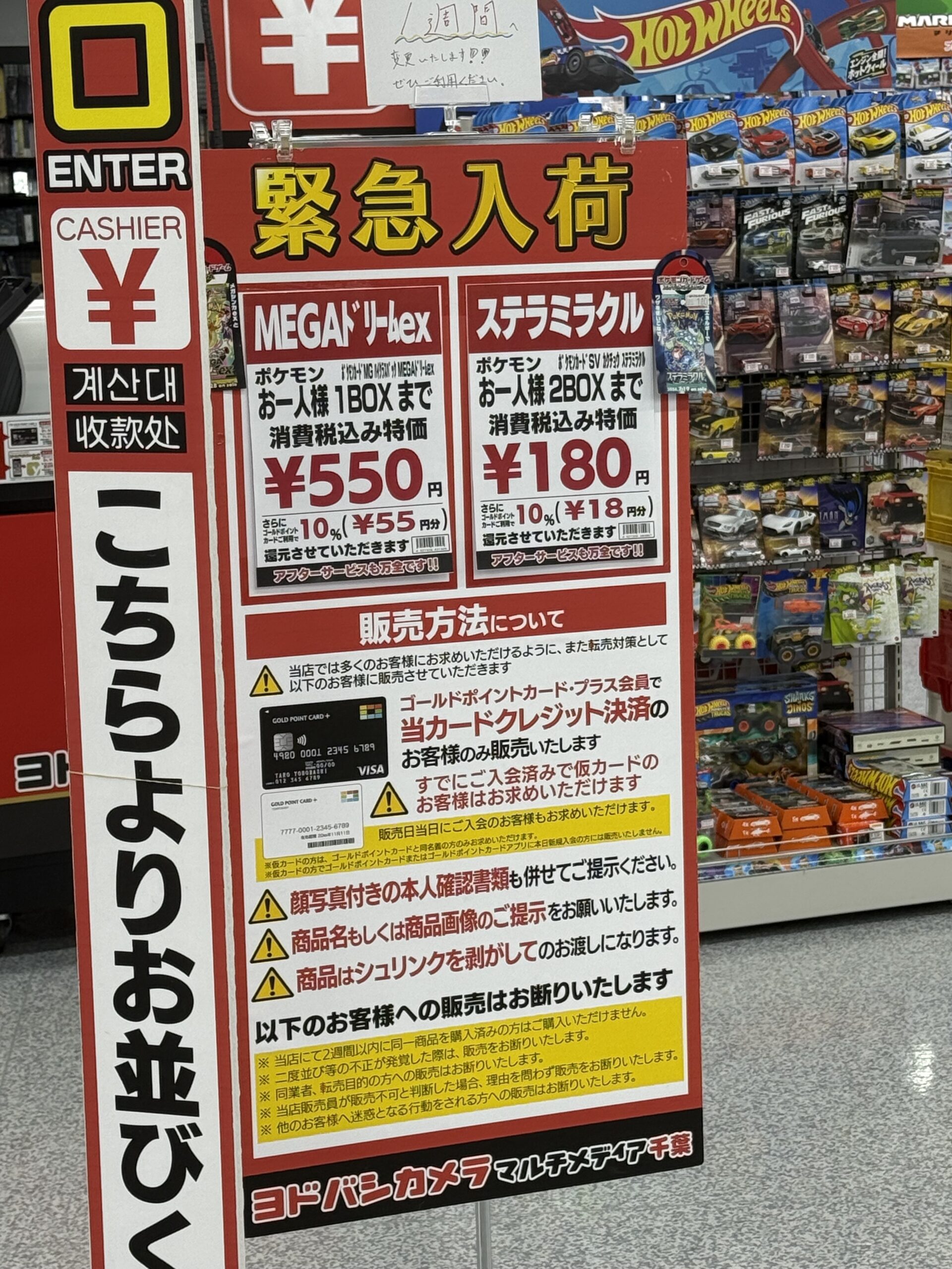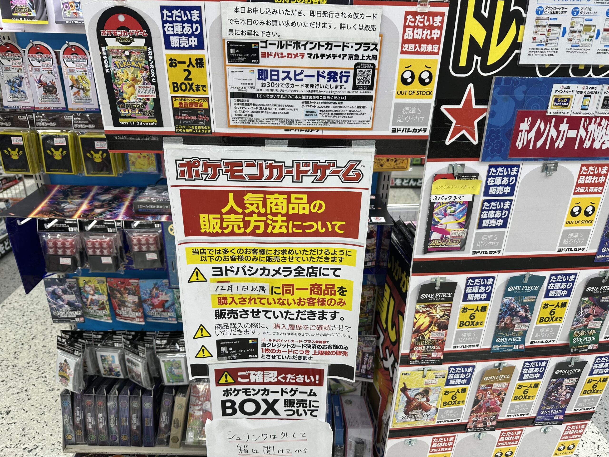 『ヨドバシカメラ』店頭でのポケカ、ワンピースカード、遊戯王カードのゲリラ販売情報。転売屋に負けずに定価入手する為の支援を実施✨