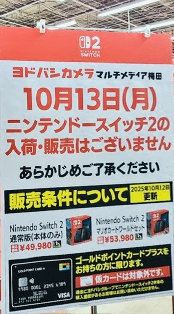 10/13早朝、ヨドバシ梅田、ヨドバシ京都で販売ありますか?