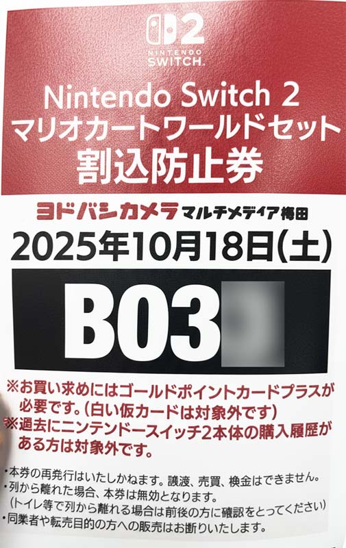 ヨドバシ横浜11:20頃整理券配布開始。マリカのみでクレカor仮カード必須でした。