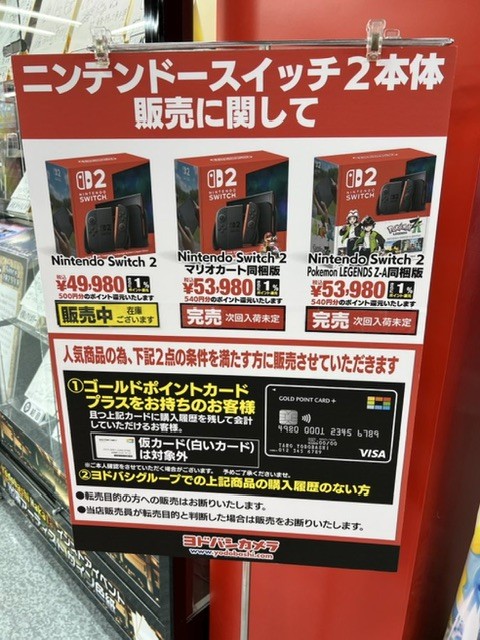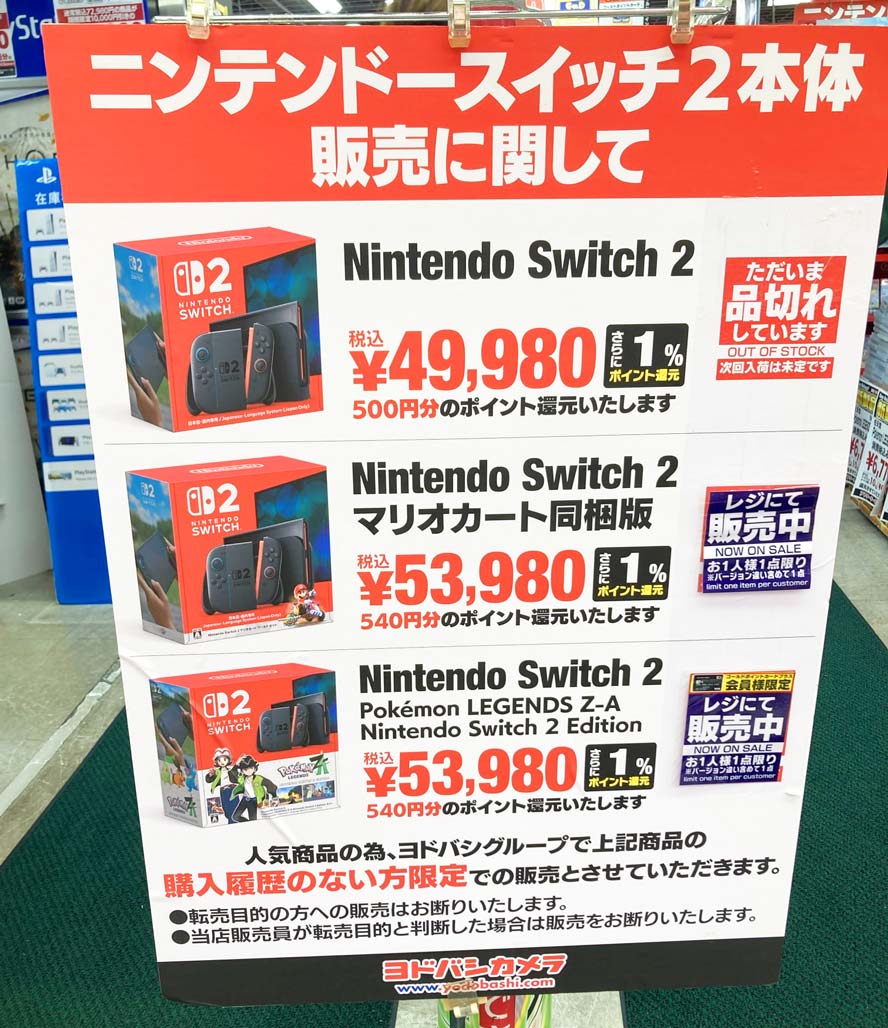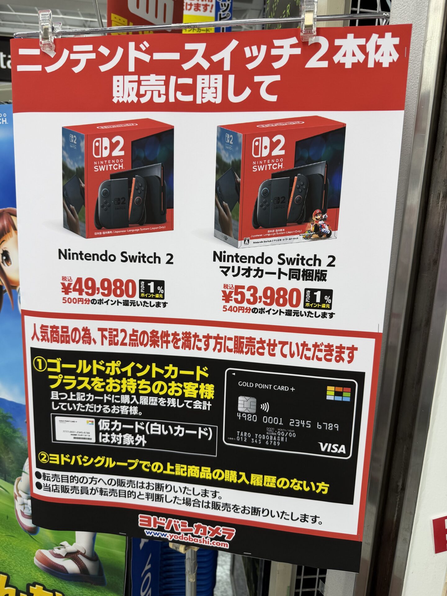 Switch2 ヨドバシ店頭在庫、販売速報(抽選、予約情報も)!