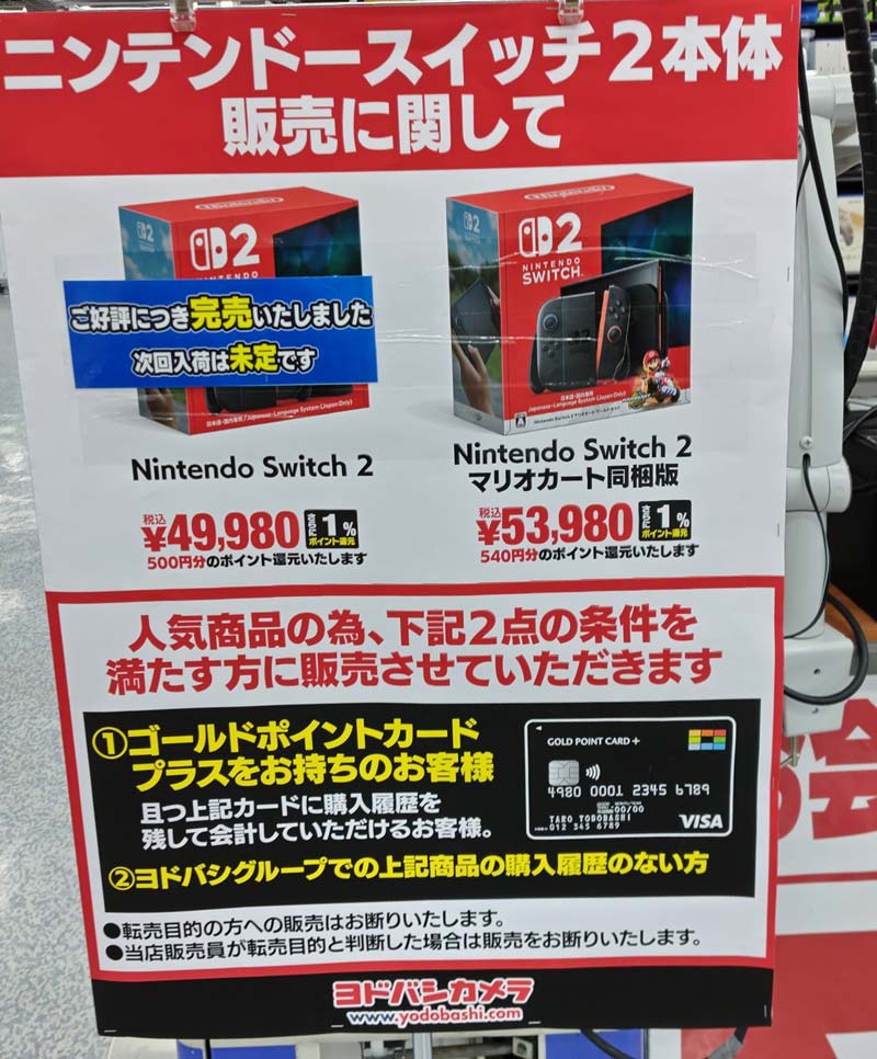 Switch2 ヨドバシ店頭在庫、販売速報(抽選、予約情報も)!