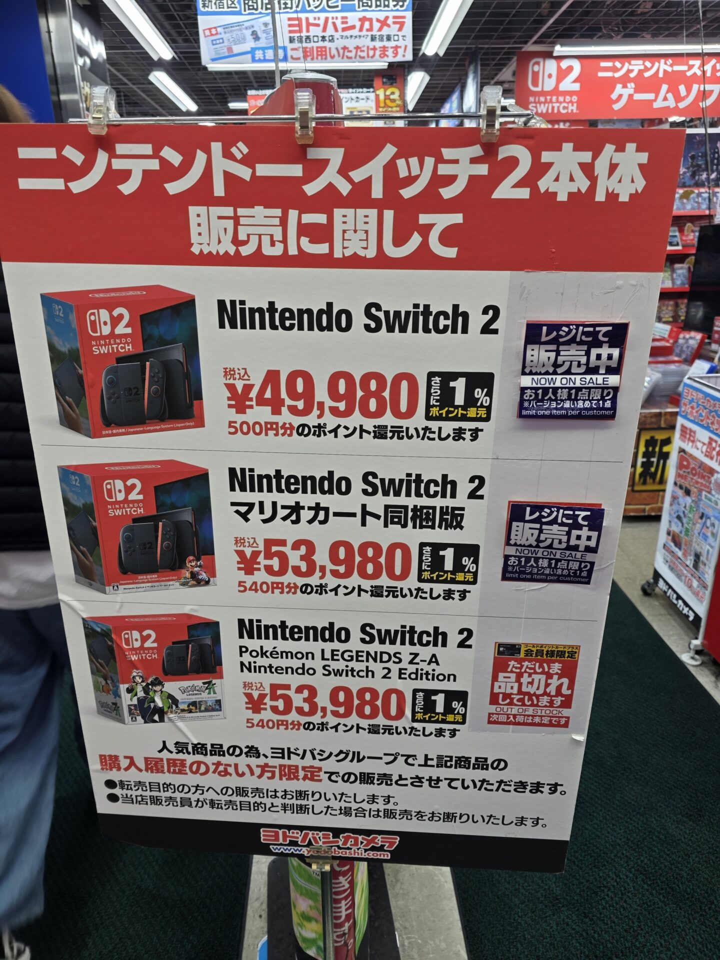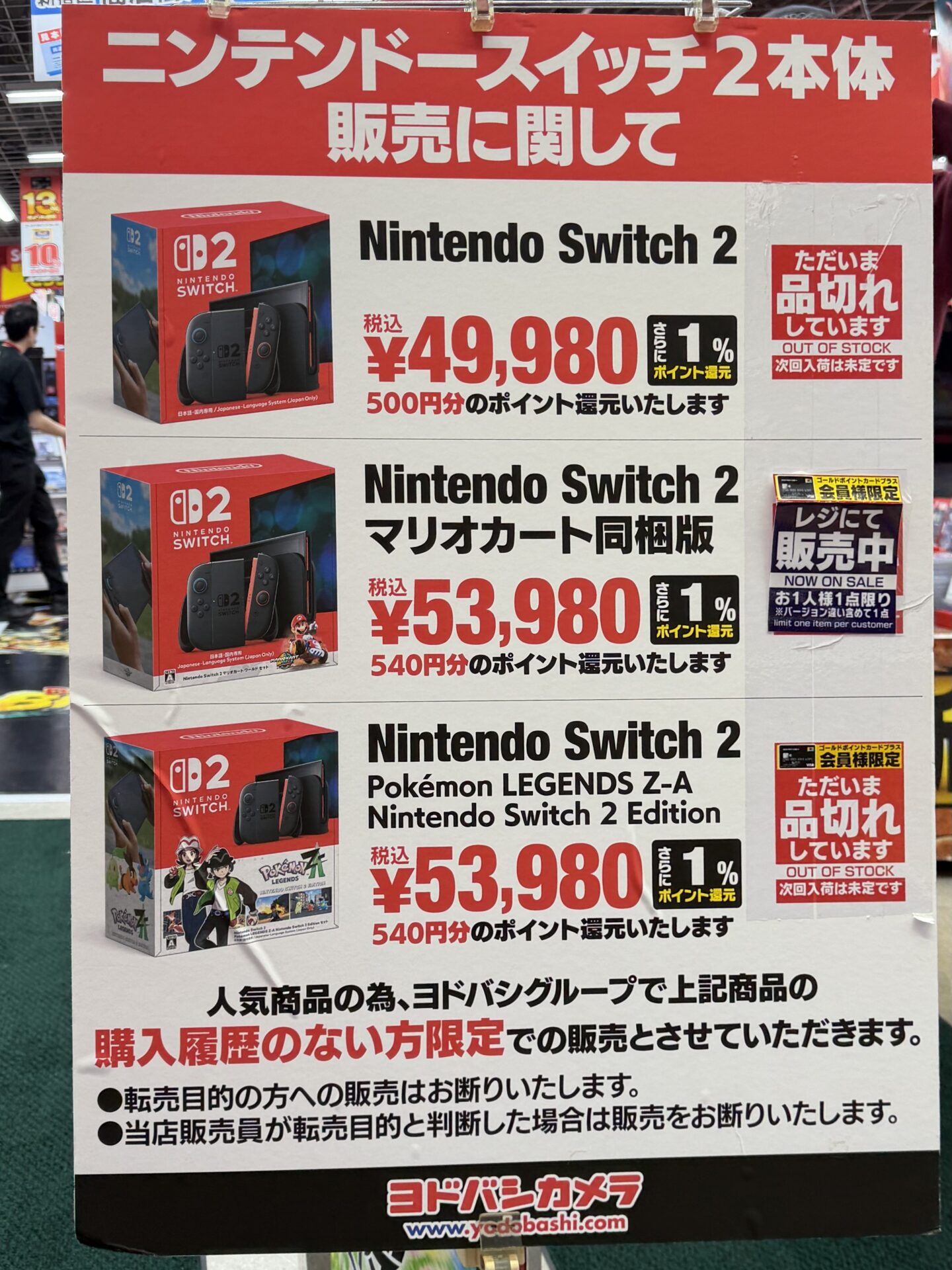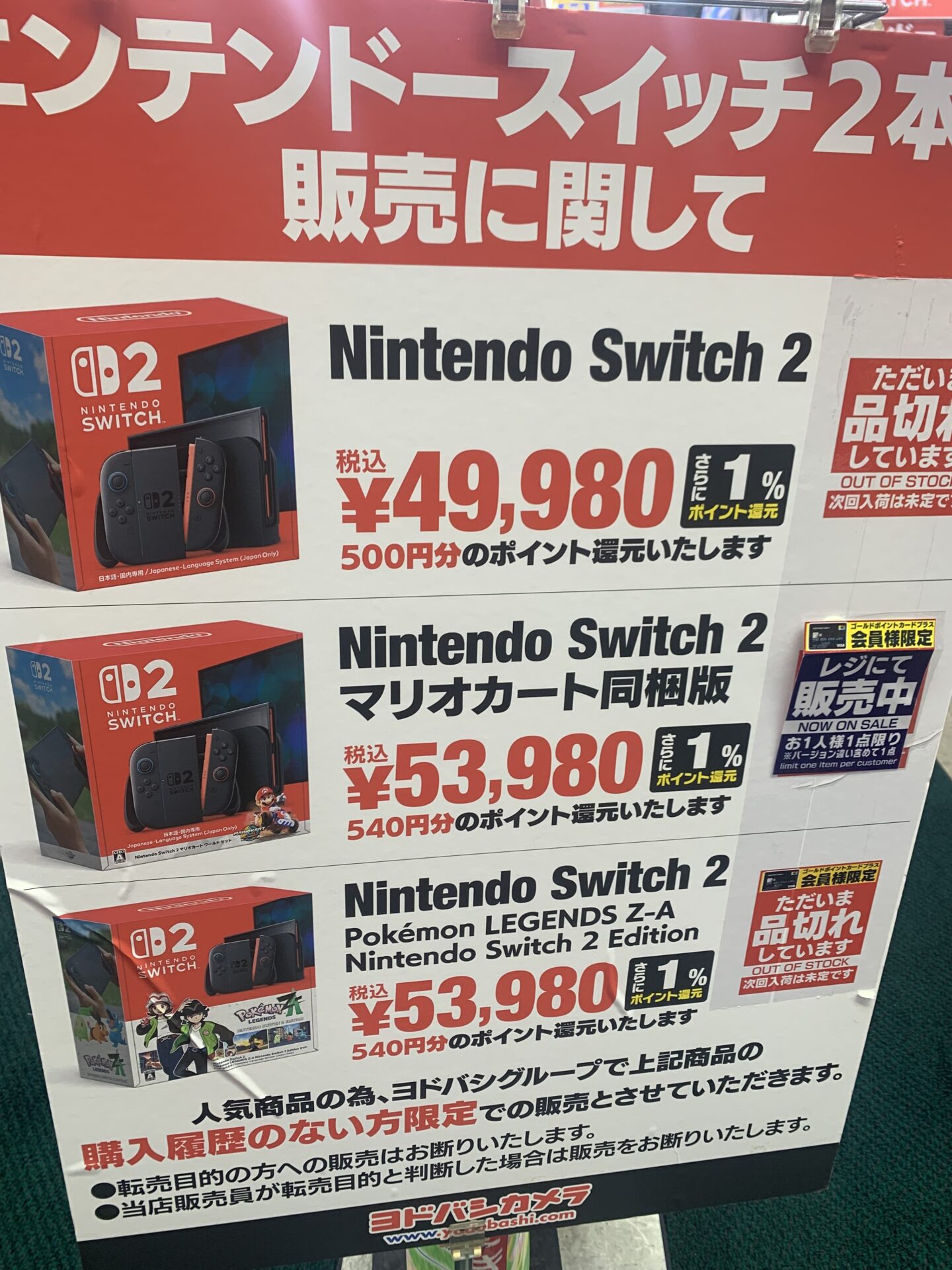 Switch2 ヨドバシ店頭在庫、販売速報(抽選、予約情報も)!