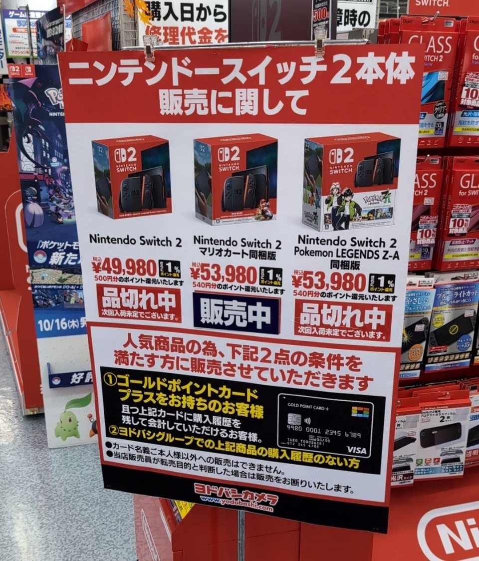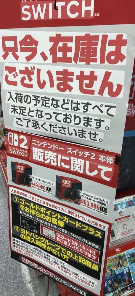 Switch2 ヨドバシ店頭在庫、販売速報(抽選、予約情報も)!