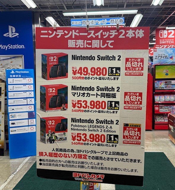 11/6 新宿西口、錦糸町、上大岡、川崎、新都心など、Switch2は販売無し