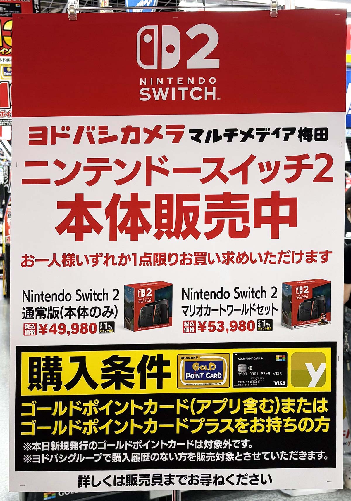 Switch2 ヨドバシ店頭在庫、販売速報(抽選、予約情報も)!