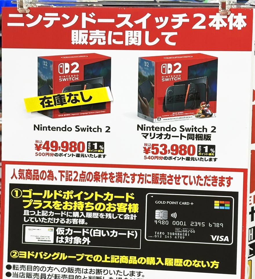 Switch2 ヨドバシ店頭在庫、販売速報(抽選、予約情報も)!