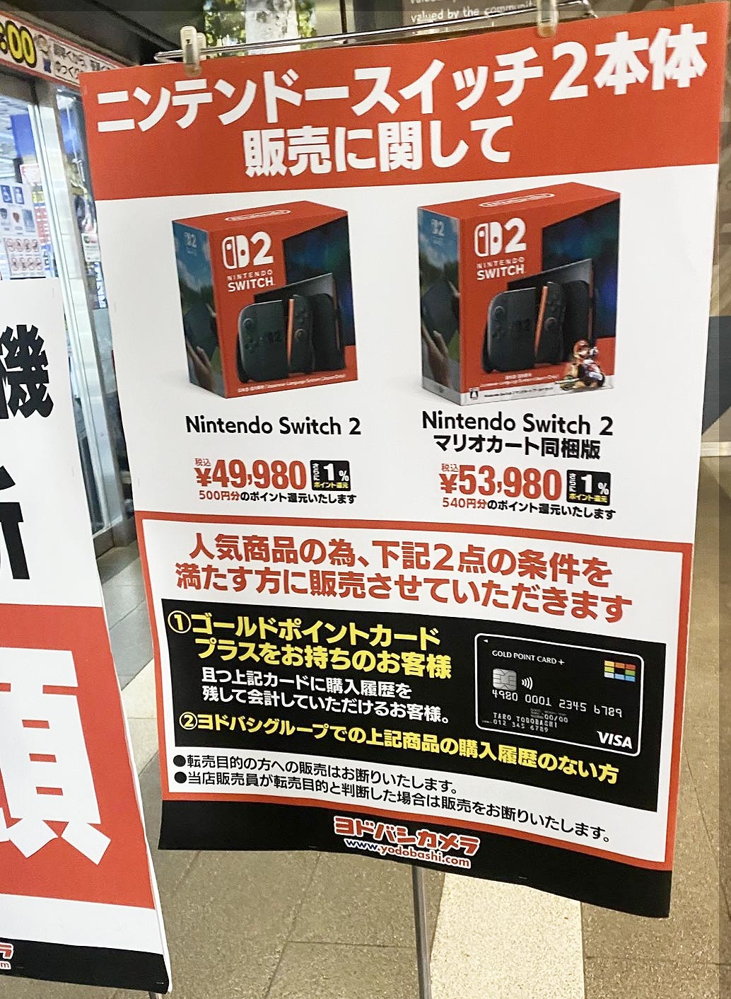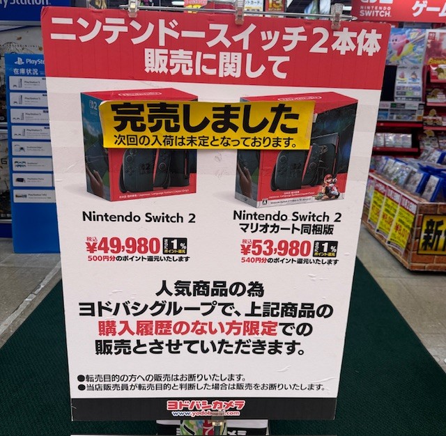 Switch2 ヨドバシ店頭在庫、販売速報(抽選、予約情報も)!