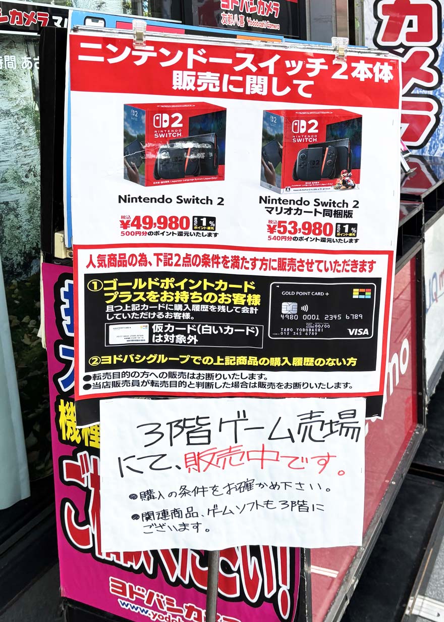 Switch2 ヨドバシ店頭在庫、販売速報(抽選、予約情報も)!